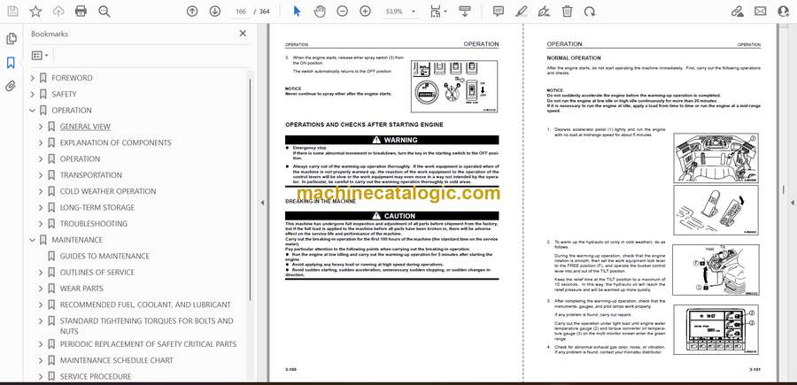 Running a WA1200-3 in a hard rock pit or big mining face, you’re pushing this loader at full breakout all day, often in dust, heat, and rough underfoot conditions. This Operation and Maintenance Manual is what I use to set a steady service rhythm so the machine doesn’t surprise us with downtime. It walks you through how to operate it without abusing the drivetrain, and how to schedule inspections so you catch things like early bucket linkage wear or cooling issues before they strand you on the bench.