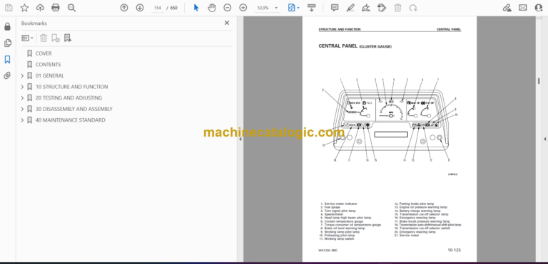 COVER CONTENTS 01 GENERAL 10 STRUCTURE AND FUNCTION 20 TESTING AND ADJUSTING 30 DISASSEMBLY AND ASSEMBLY 40 MAINTENANCE STANDARD