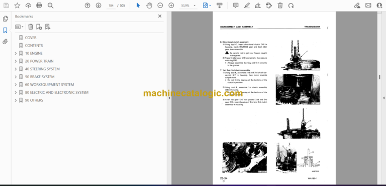 COVER CONTENTS 10 ENGINE 20 POWER TRAIN 40 STEERING SYSTEM 50 BRAKE SYSTEM 60 WORKEQIJIPMENT SYSTEM 80 ELECTRIC AND ELECTRONIC SYSTEM 90 OTHERS