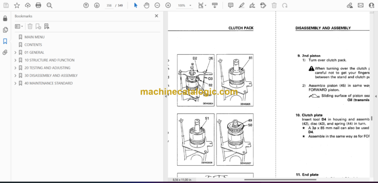 MAIN MENU CONTENTS 01 GENERAL 10 STRUCTURE AND FUNCTION 20 TESTING AND ADJUSTING 30 DISASSEMBLY AND ASSEMBLY 40 MAINTENANCE STANDARD