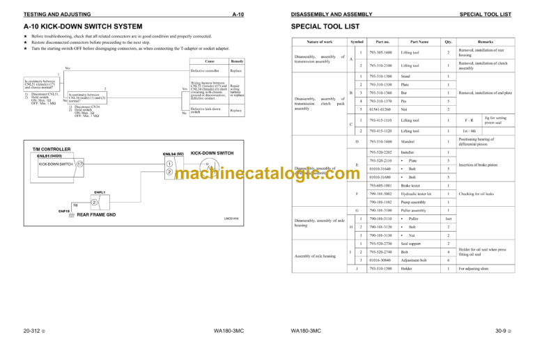 Komatsu WA180-3MC Avance Plus Wheel Loader Shop Manual (CEBM005002)