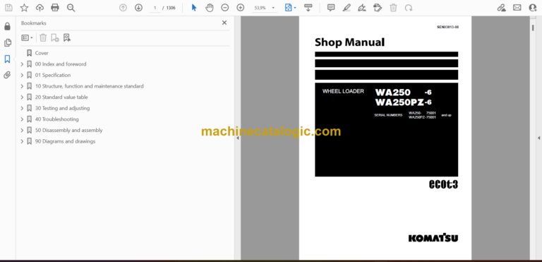 Komatsu WA250-6, WA250PZ-6 Wheel Loader Shop Manual (SEN03813-08)