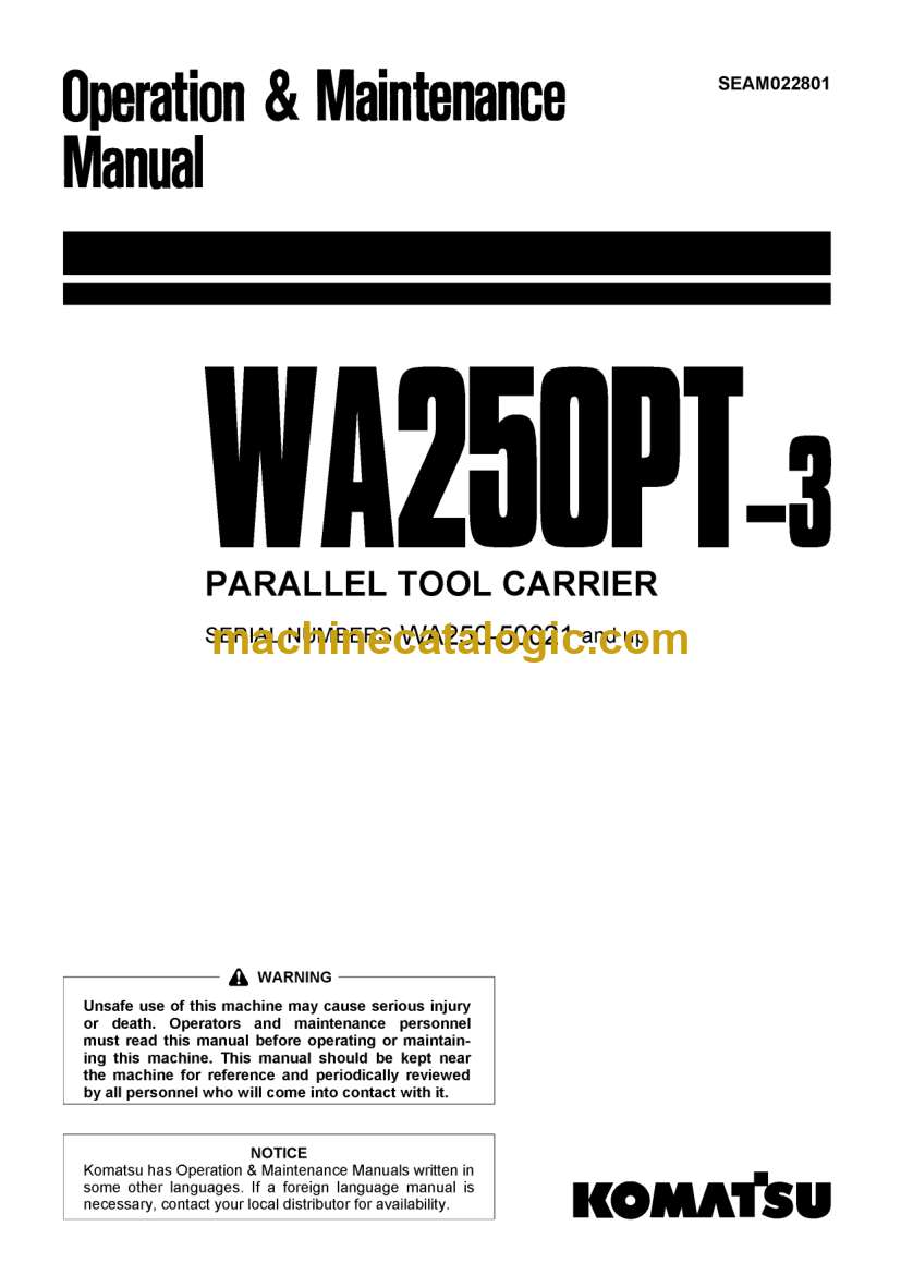 Komatsu WA250PT-3 Wheel Loader Operation and Maintenance Manual (SEAM022801)