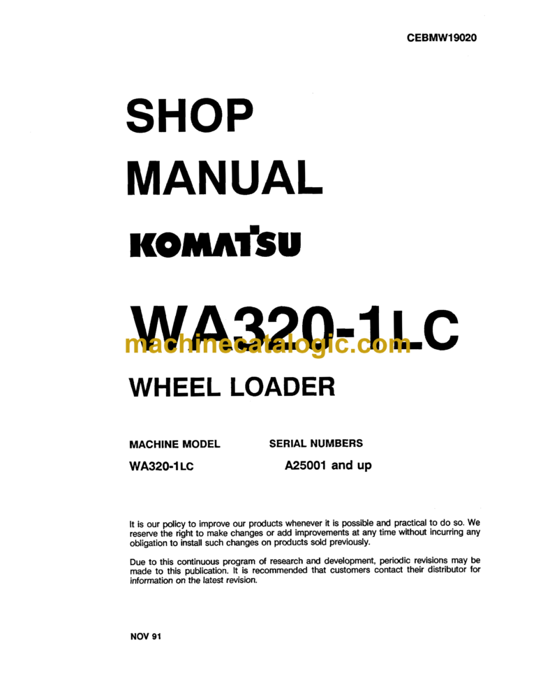MAIN MENU CONTENTS 10 ENGINE 20 POWER TRAIN 40 STEERING SYSTEM 50 BRAKE SYSTEM 60 WORK EQUIPMENT SYSTEM 80 ELECTRIC AND ELECTRONIC SYSTEM 90 OTHER