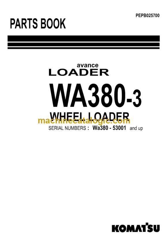 Komatsu WA380-3 Avance Loader Wheel Loader Parts Manual (PEPB025700) (SN 53001-)