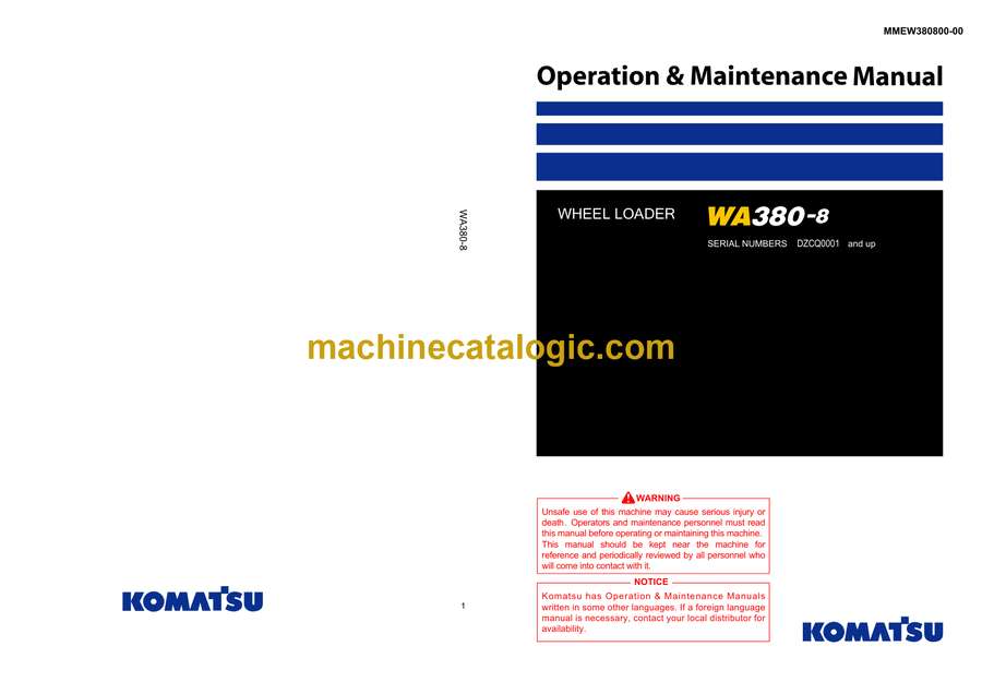 Komatsu WA380-8 Wheel Loader Operation and Maintenance Manual (MMEW380800-00)