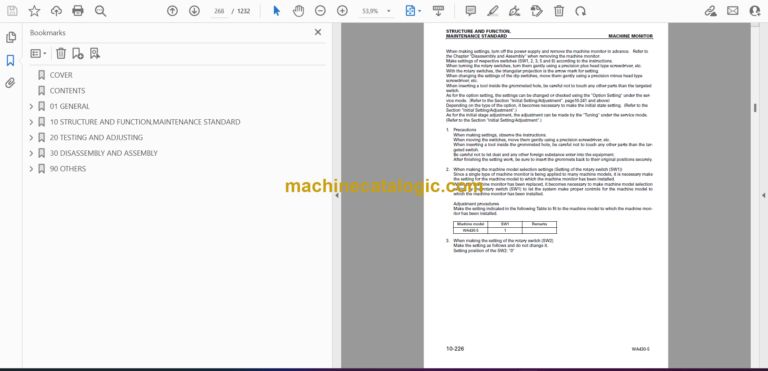 COVER CONTENTS 01 GENERAL 10 STRUCTURE AND FUNCTION,MAINTENANCE STANDARD 20 TESTING AND ADJUSTING 30 DISASSEMBLY AND ASSEMBLY 90 OTHERS