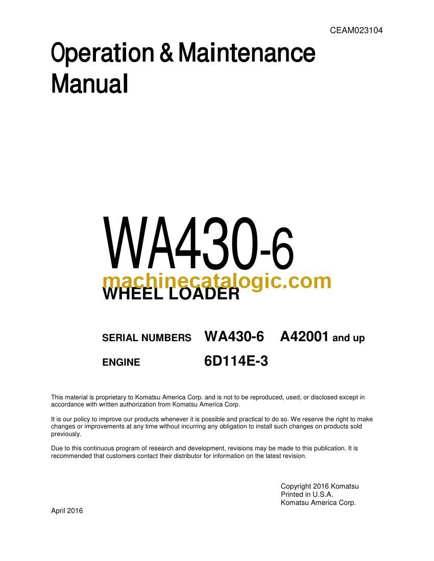 Komatsu WA430-6 Wheel Loader Operation and Maintenance Manual (CEAM023104)