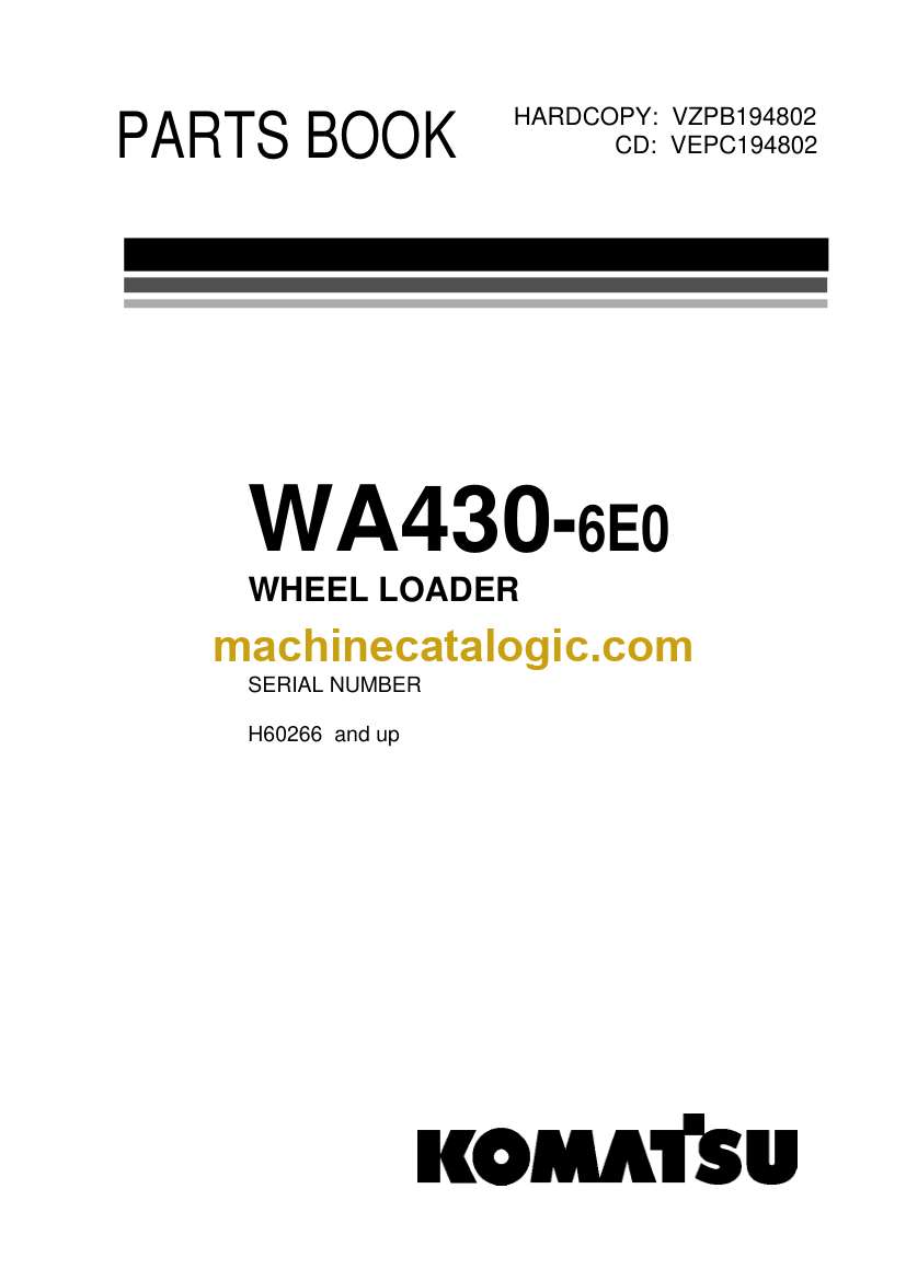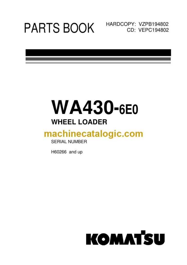 Komatsu WA430-6E0 Wheel Loader Parts Manual (VEPC194802) (H60266 and up)