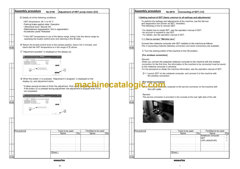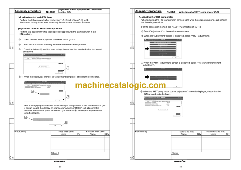 0140 Adjustment of HST pump motor (1/3) to (3/3) 56