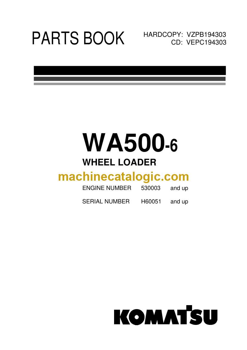 Komatsu WA500-6H Wheel Loader Parts Manual (VZPB194303) (H60051 and up)