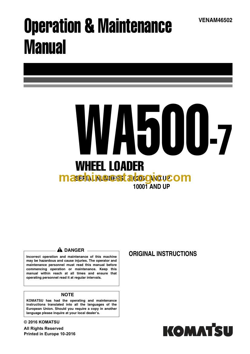 Komatsu WA500-7 Wheel Loader Operation and Maintenance Manual (VENAM46502)