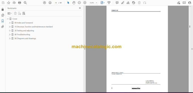 Cover 00 Index and foreword 10 Structure, function andmaintenance standard 30 Testing and adjusting 40 Troubleshooting 90 Diagrams and drawings