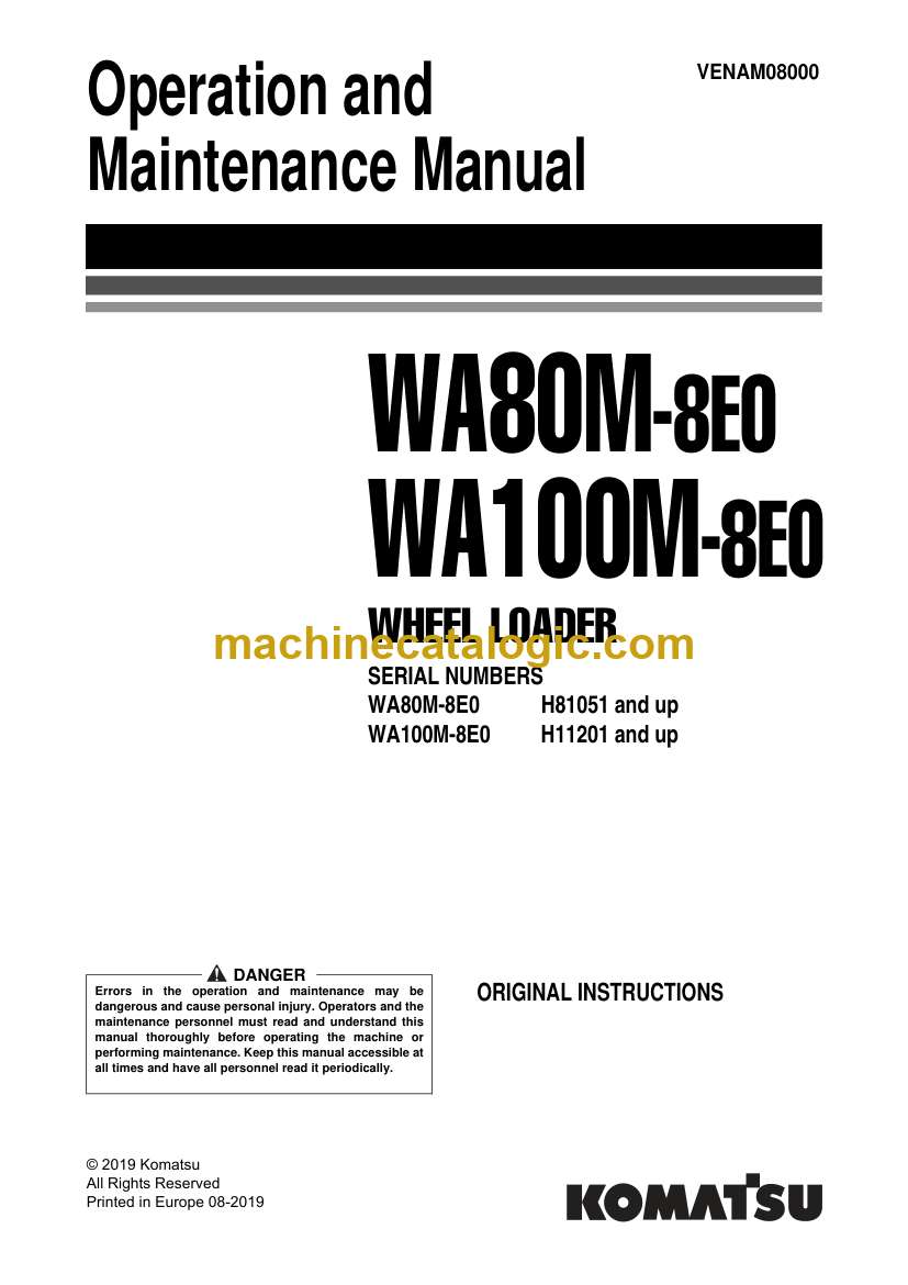 Komatsu WA80M-8, WA100M-8E0 Wheel Loader Operation and Maintenance Manual (VENAM08000)