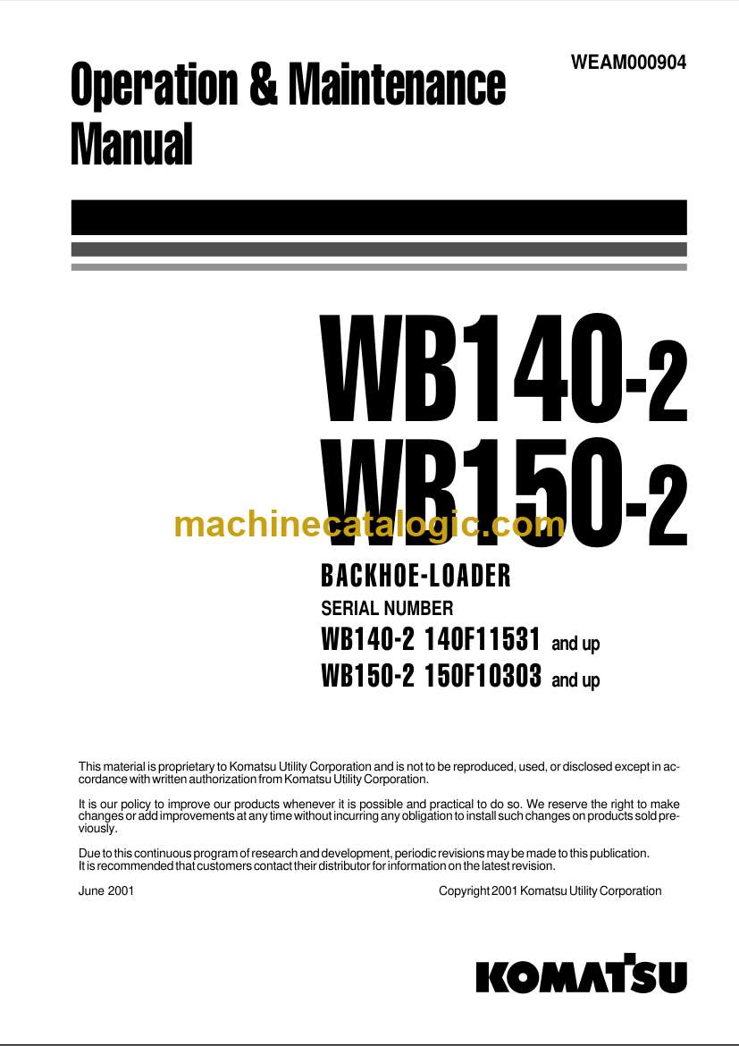 Komatsu WB140-2, WB150-2 Backhoe Loader Operation and Maintenance Manual (WEAD000904)