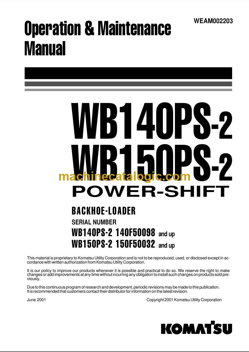 Model: WB140PS-2, WB150PS-2 Backhoe Loader