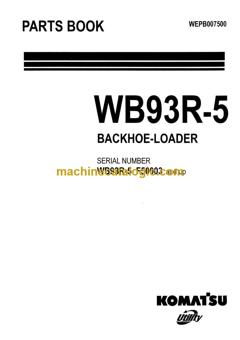 Komatsu WB93R-5 Backhoe Loader Parts Manual (WEPB007500) (SN F50003-)