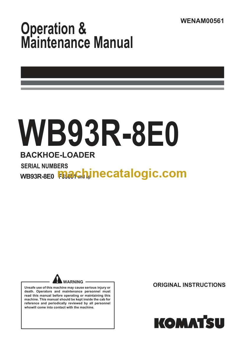 Komatsu WB93R-8E0 Backhoe Loader Operation and Maintenance Manual (WENAM00561)
