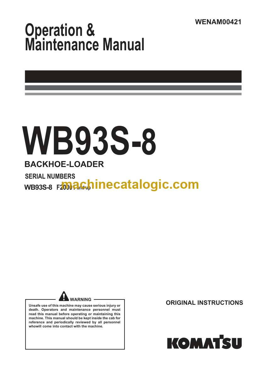 The WB93S-8 is usually working hard in roadwork, utility trenches, and tight urban jobsites, where it’s bouncing between loading, digging, and lifting all day. This Operation and Maintenance Manual helps you set a solid service rhythm so the machine starts every morning and doesn’t surprise you with avoidable breakdowns. When, for example, the boom feels sluggish or steering gets a bit vague, this is what I’d open to trace whether it’s a simple maintenance miss—like a filter, fluid check, or inspection point—before calling in major repairs.