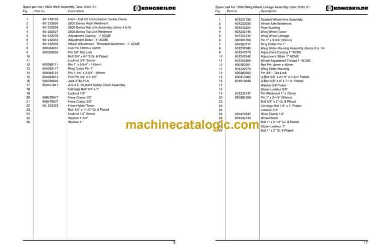 Kongskilde Vibro-Till 2800 Field Cultivator Spare Part List
