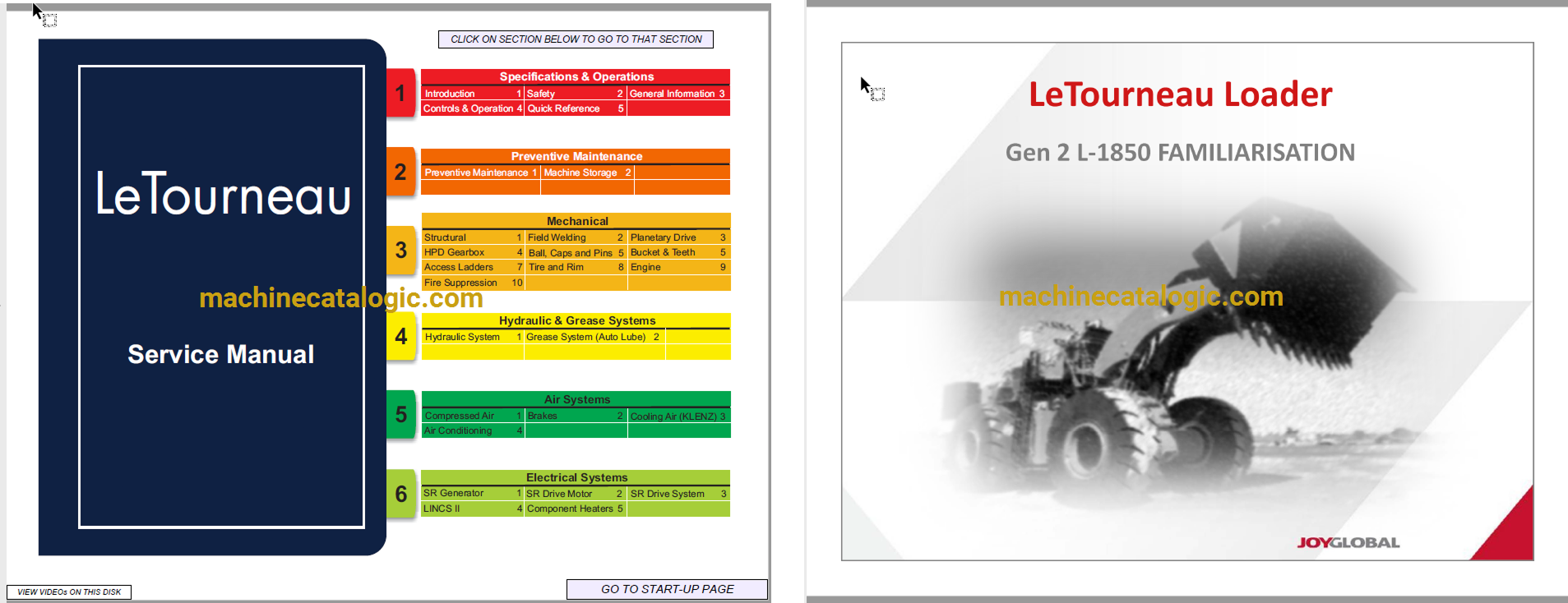 Letourneau L1850 Gen2 Wheel Loader Service Manual, Technical Training Index: