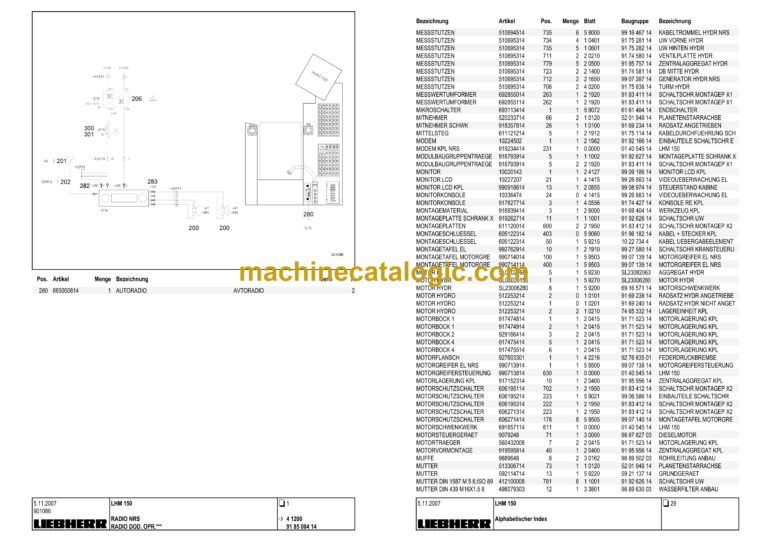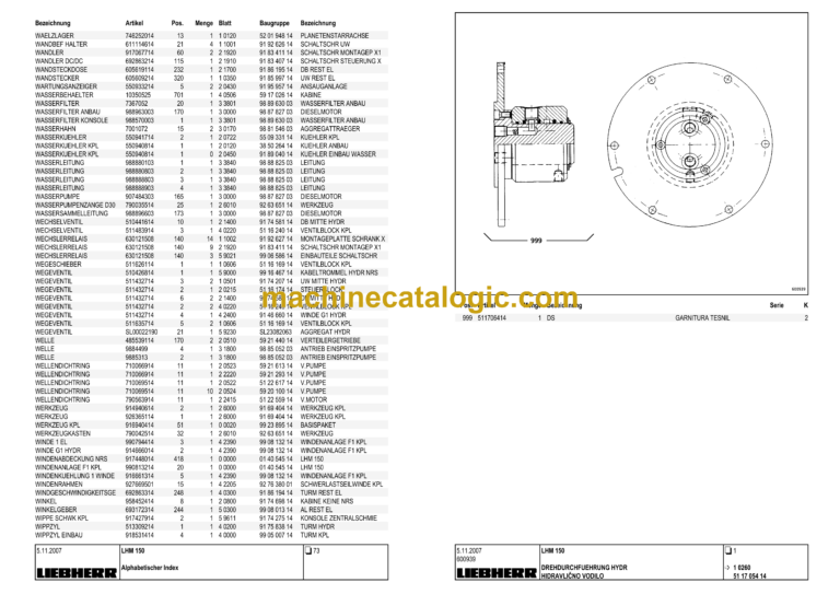 Liebherr LHM 150 Mobile Harbour Crane Ersatzteilkatalog (DE-SL)
