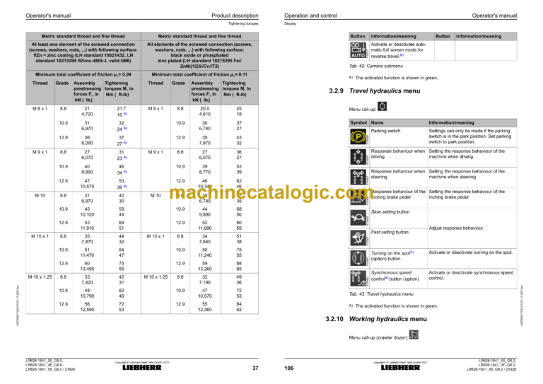 Liebherr LR 626 Crawler Loader Operating Manual (From SN 21929)