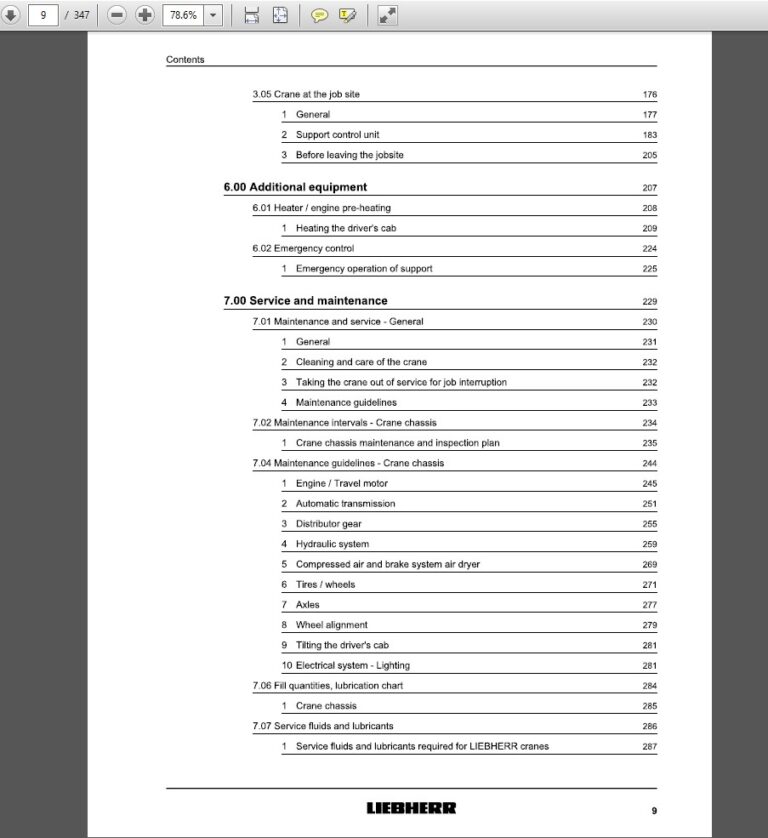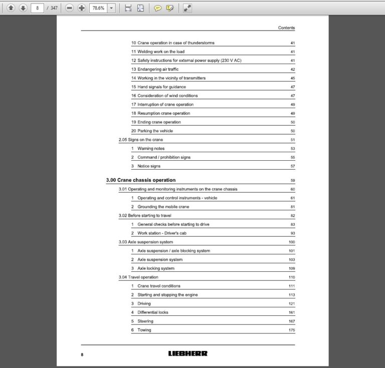 Liebherr MK63 Mobile Crane Operating and Maintenance Manual Index
