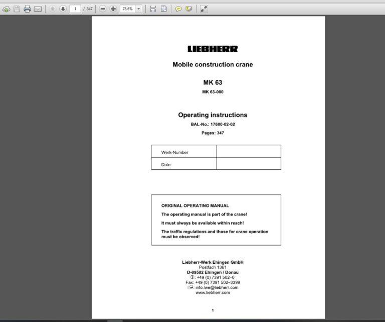 Liebherr MK 63 Mobile Crane Operating instructions