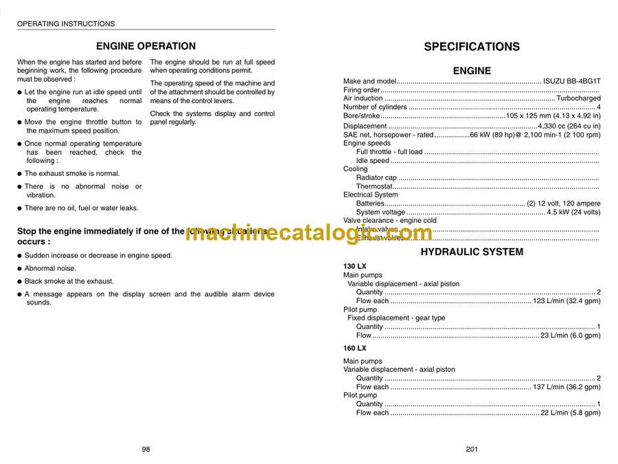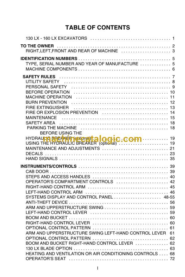 130 LX – 160 LX EXCAVATORS . . . . . . . . . . . . . . . . . . . . . . . . . . . . . . . . . . 1