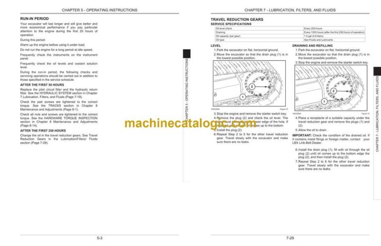On a 160X3 excavator that spends its life trenching, loading trucks, or working around utilities, this operators manual is what I’d keep handy in the cab. It walks you through how to run the controls correctly, what to look over at the start and end of the shift, and how to shut it down without shocking the hydraulics or electronics. If an operator complains the machine feels “sluggish” or is throwing a warning light after startup, I’d use this book to verify they’re following the right start-up sequence and daily inspection steps before I start tearing into components.
