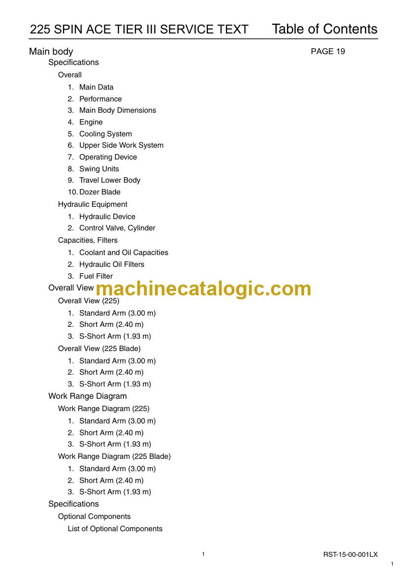 On a 225 Spin Ace working in tight urban digs or utility trenches, this service text manual is what I’d keep open when the machine starts acting up or comes in for scheduled work. It helps you trace systems, verify settings, and confirm dimensions so you’re not guessing. For example, if the excavator starts running hot or loses power under load, this is the book you use to track through the engine and cooling checks step by step and decide what to test next.