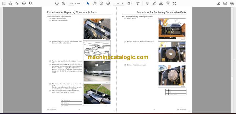 On a 290X2 that spends its life digging foundations, loading trucks, or working in rocky trench jobs, this shop manual is what you reach for when the work goes beyond basic checks. It helps you tear down, inspect, and reassemble major systems in a way that makes sense in the field. Say you’ve got slow boom response and suspect an internal leak in the work circuit—this manual guides how to trace the issue, pull the right components, and put everything back together without guesswork or repeat failures.