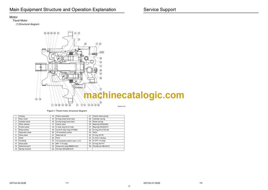 • Checking wear points on pins, bushings, swing gear, and travel components before you order parts.