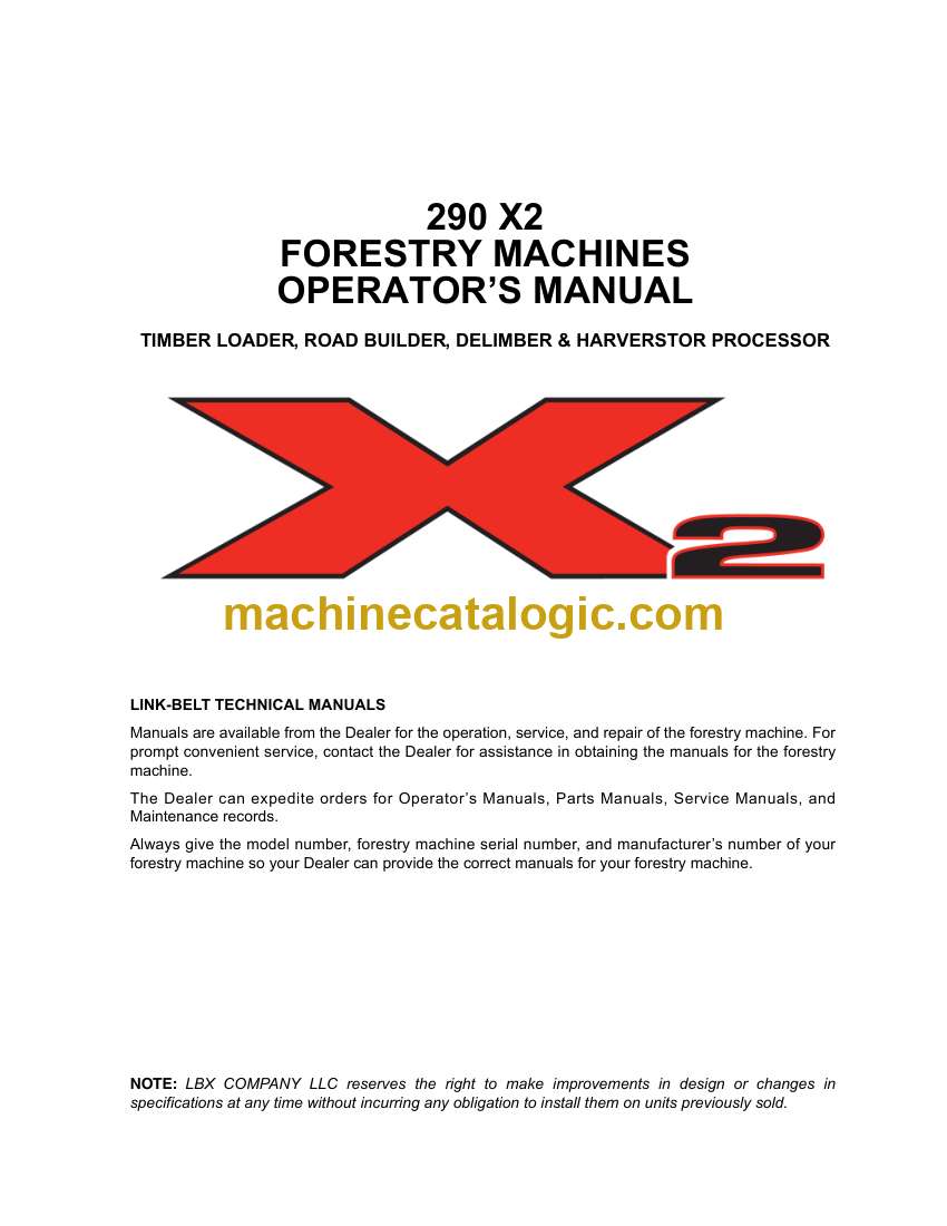 Link Belt 290X2 Forestry Machines Timber Loader, Road Builder, Delimber, Harverstor Precessor Operators Manual