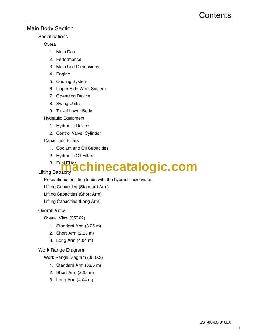 On a 350X2, you’re usually digging deep trenches, loading trucks, or handling rock in rough sites where downtime hurts. This shop manual is what I’d keep open when I’m tearing into major components or chasing a stubborn hydraulic or cooling issue. It walks you through how to strip, inspect, and reassemble the big systems in a way that keeps you from missing hidden wear or mixing up parts. If, for example, the machine starts running hot under load, this is the document I’d use to trace the cooling circuit, verify flow paths, and rebuild components with confidence that it’ll hold up back in the dirt.
