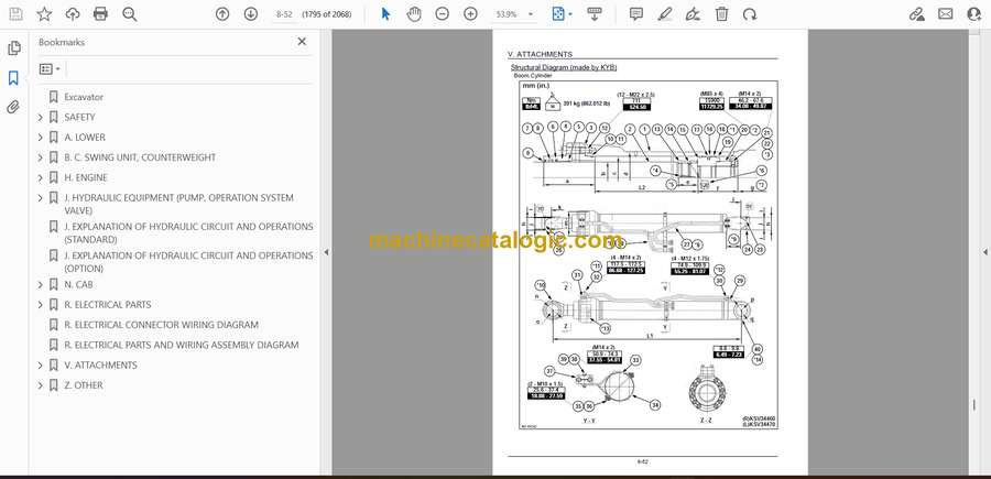 These 5040 RB and 5040 TL excavators usually live in rough dirt work—trenching, loading trucks, working around rock and demolition debris. This service manual is what I’d keep open when I need to trace a hydraulic issue, strip down a component, or verify an adjustment before buttoning the machine back up. For example, if the boom starts drifting down under load, I’d use this manual to step through the checks on the control valve and cylinders instead of guessing and throwing parts at it.