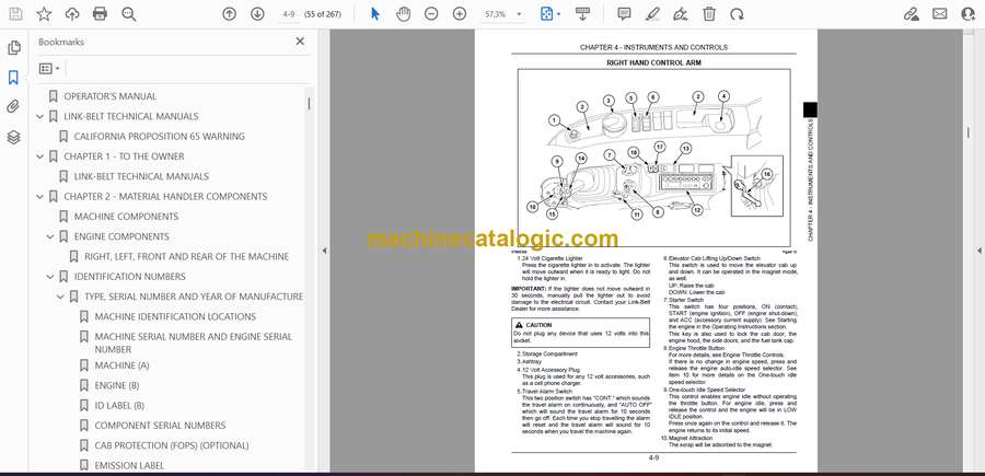 • POSITION OF THE CAB CONTROLS AND ACCESSORIES