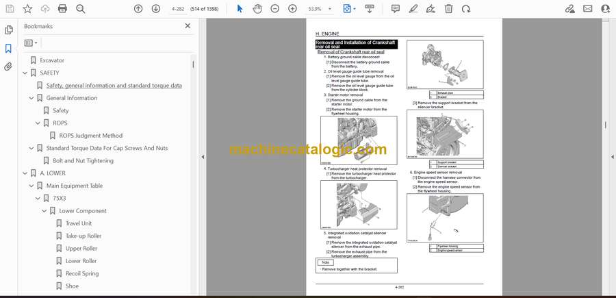 On a 75X3, you’re usually digging in tight sites, loading trucks, or trenching around utilities, often in mud and rough ground. This service manual is what I’d pull when I need to trace a hydraulic issue, verify a control adjustment, or tear down a component without guessing. For example, if the boom drifts down when you’re holding a load, this is the book I’d use to follow the diagnostic steps, isolate whether it’s a cylinder, valve, or control problem, then reassemble and test it correctly.