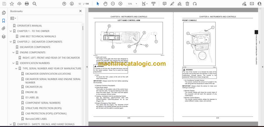 Link Belt 80X3 Hydraulic Excavator Operators Manual