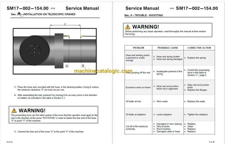 SM02-008-013.00 6 SECTION CONTROL VALVE, SM05-006-056.00 WINCH, TROUBLESHOOTING