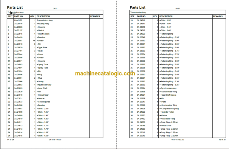 01-018-194.00 TRANSMISSION LOOSE PARTS 01-046-084.00 JACK CYLINDER ASSY