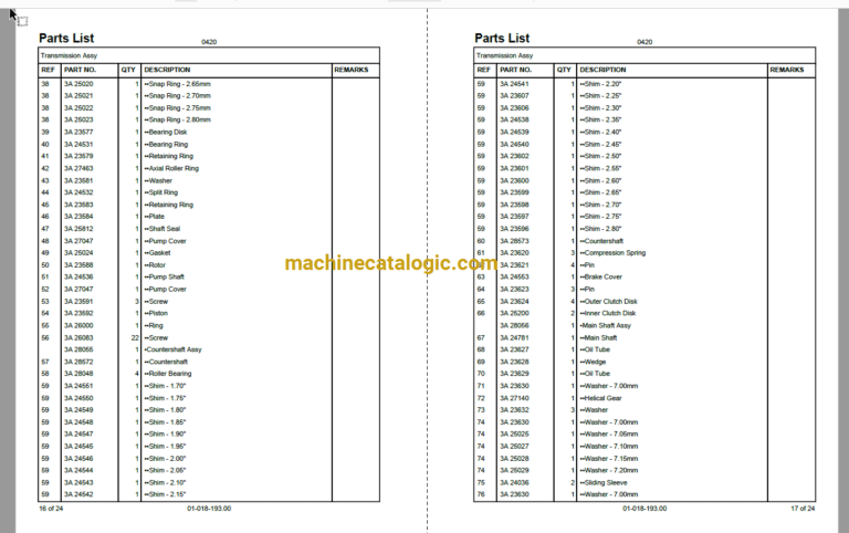 01-018-194.00 TRANSMISSION LOOSE PARTS 01-046-084.00 JACK CYLINDER ASSY