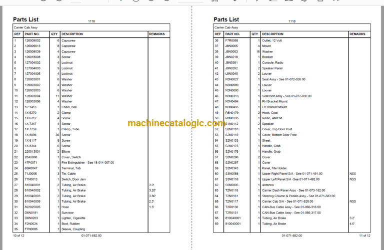 01-071-582.00 CARRIER CAB ASSY 05 HORIZONTAL SHAFTS