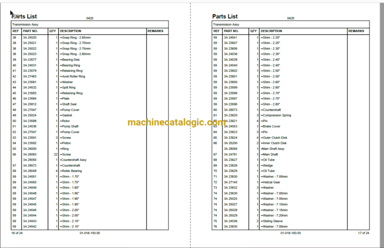 01-018-194.00 TRANSMISSION LOOSE PARTS 01-046-084.00 JACK CYLINDER ASSY