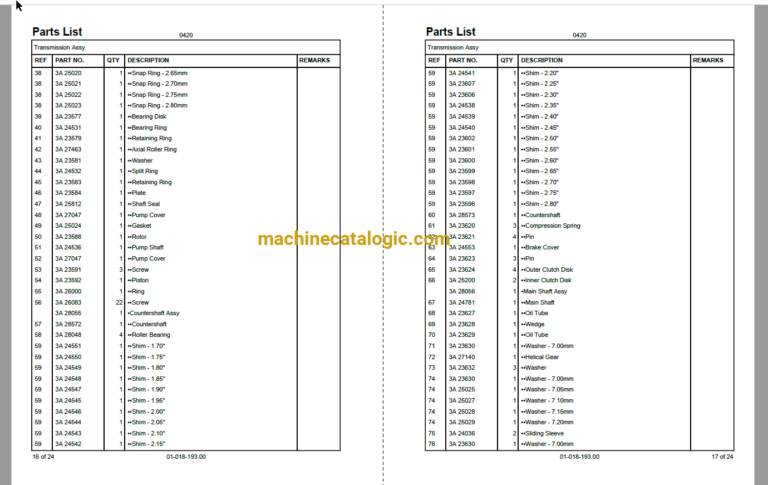 01-018-194.00 TRANSMISSION LOOSE PARTS 01-046-084.00 JACK CYLINDER ASSY