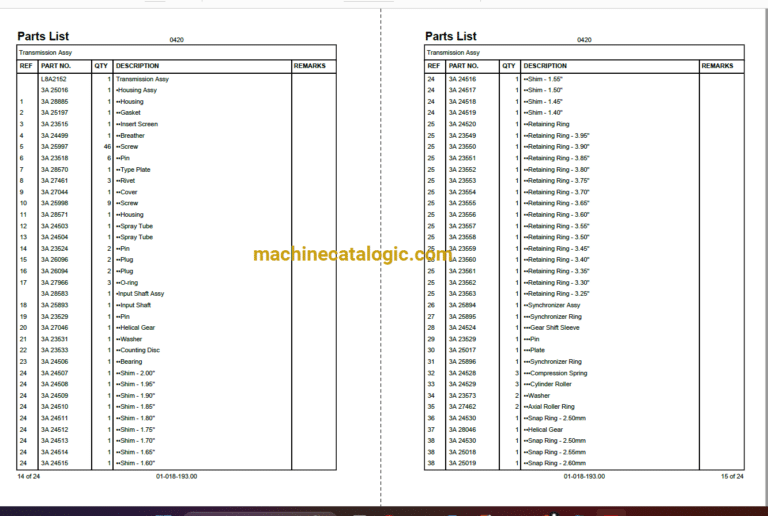 01-018-194.00 TRANSMISSION LOOSE PARTS 01-046-084.00 JACK CYLINDER ASSY