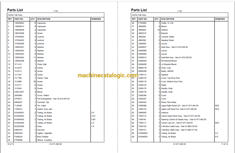 01-045-196.00 RH OUTRIGGER GROUND CONTR 01-071-582.00 CARRIER CAB ASSY