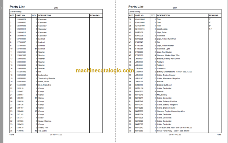 06-048-242.00 UPPER CAB WIRE HARNESS 16-000-001.00 WIRE ROPE SPECIFICATIONS