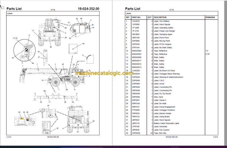 17-003-239.00 BOOM HOIST CYLINDER & LIN 18-024-289.00 COUNTERWEIGHT LABELS